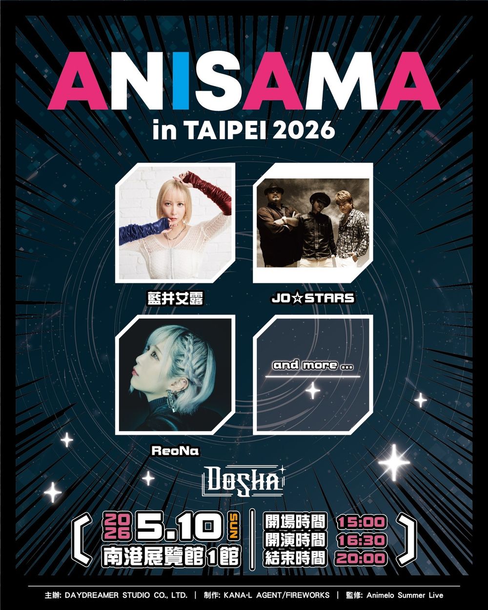 Animelo Summer Live 今年將與新想股份有限公司(DAYDREAMER STUDIO)攜手打造的「ANISAMA in TAIPEI 2026 -DOSHA!- 」,官方於昨日公開了第二波演出陣容。